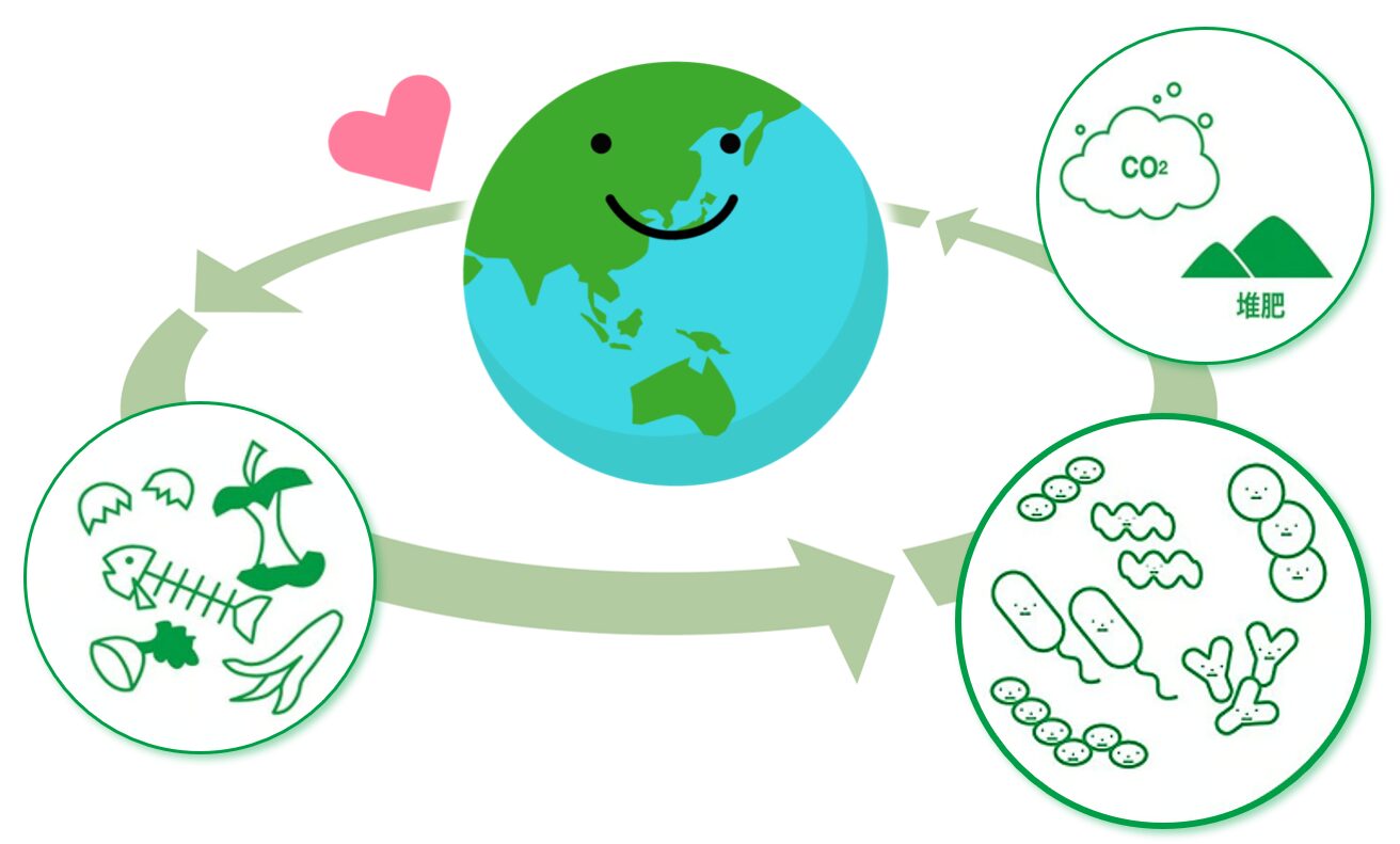 コンポスト(堆肥化)とは、土壌中の微生物を用いて有機物を分解し、肥料に変える方法です。自然本来の持つ浄化・循環作用であり、古来から世界各地で利用されてきました。コンポストが広く普及していた江戸時代の日本では、生ごみやし尿が土に還り、生活圏内に残ることがなかったため、世界でも類を見ないほど衛生的な循環型社会が形成されていたと言われています