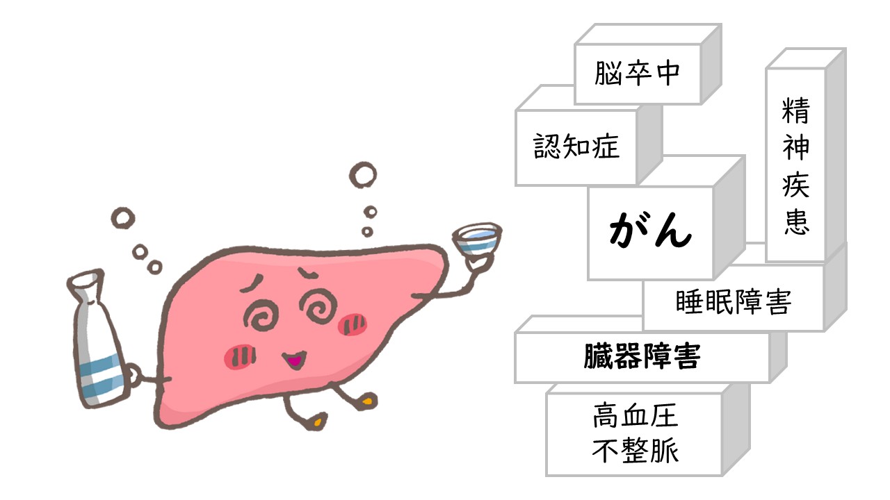 お酒による健康被害を挙げれば切りがありません。たとえ少量の飲酒であっても慢性化すると、肝臓をはじめとする臓器障害、高血圧や不整脈、がん、脳卒中、睡眠障害、認知症、精神疾患などが生じます。また、忘れがちですが、酩酊状態での怪我や転倒、交通事故も相当数報告されています。2019年の報告によれば、アルコール関連死が世界全体で260万人に昇り、総死亡人口の約4.7%を占めました。その有害性を鑑みて、お酒に寛容な日本でも「アルコール健康障害対策基本法」が施行されたほどです。